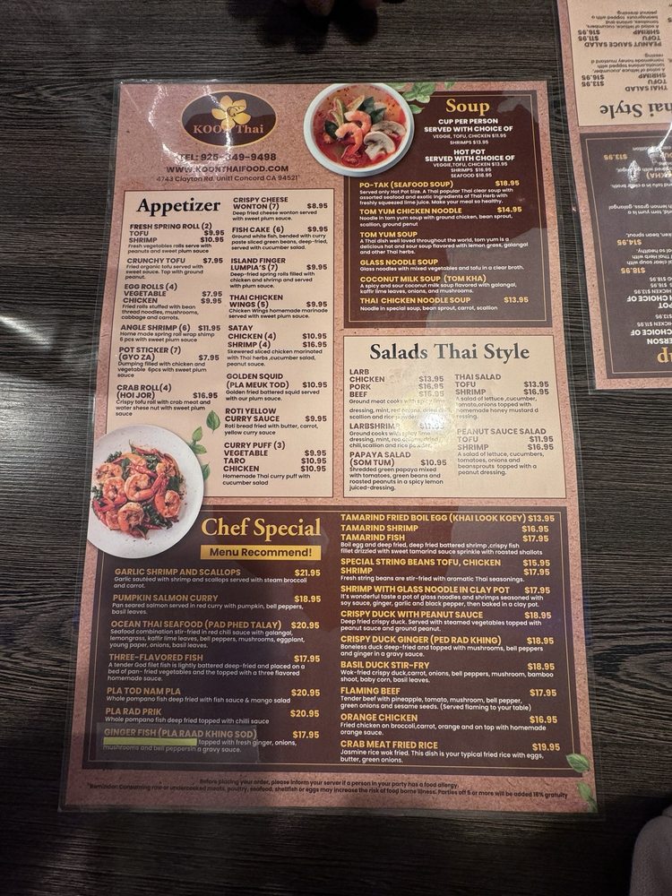 Dive into their menu and savor the mouthwatering dishes prepared with fresh ingredients and traditional Thai flavors. Whether you're a seafood lover or a vegetarian enthusiast, there's something for everyone at Koon Thai Kitchen. Don't miss out on their happy hour specials and beer & wine offerings to complement your meal.